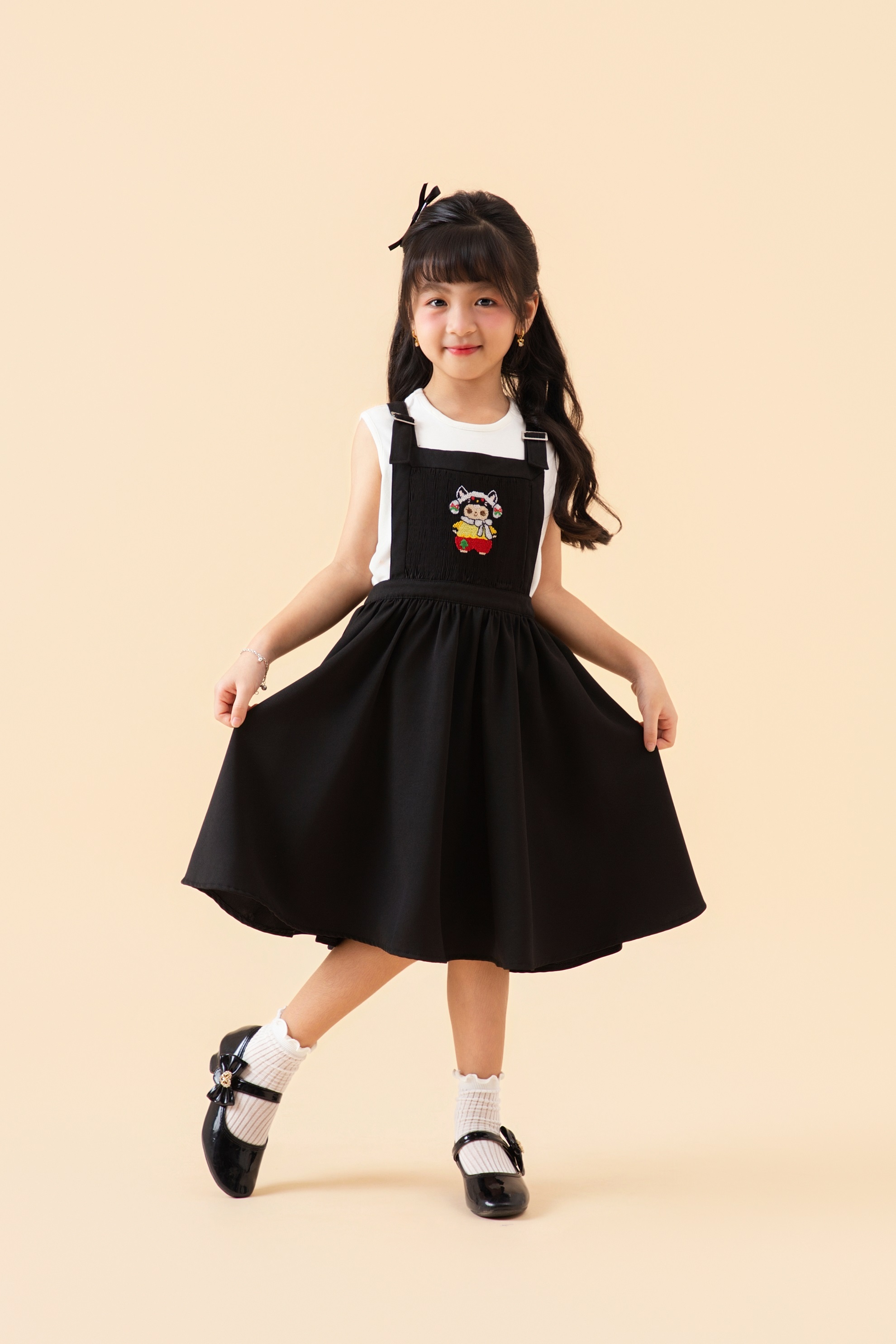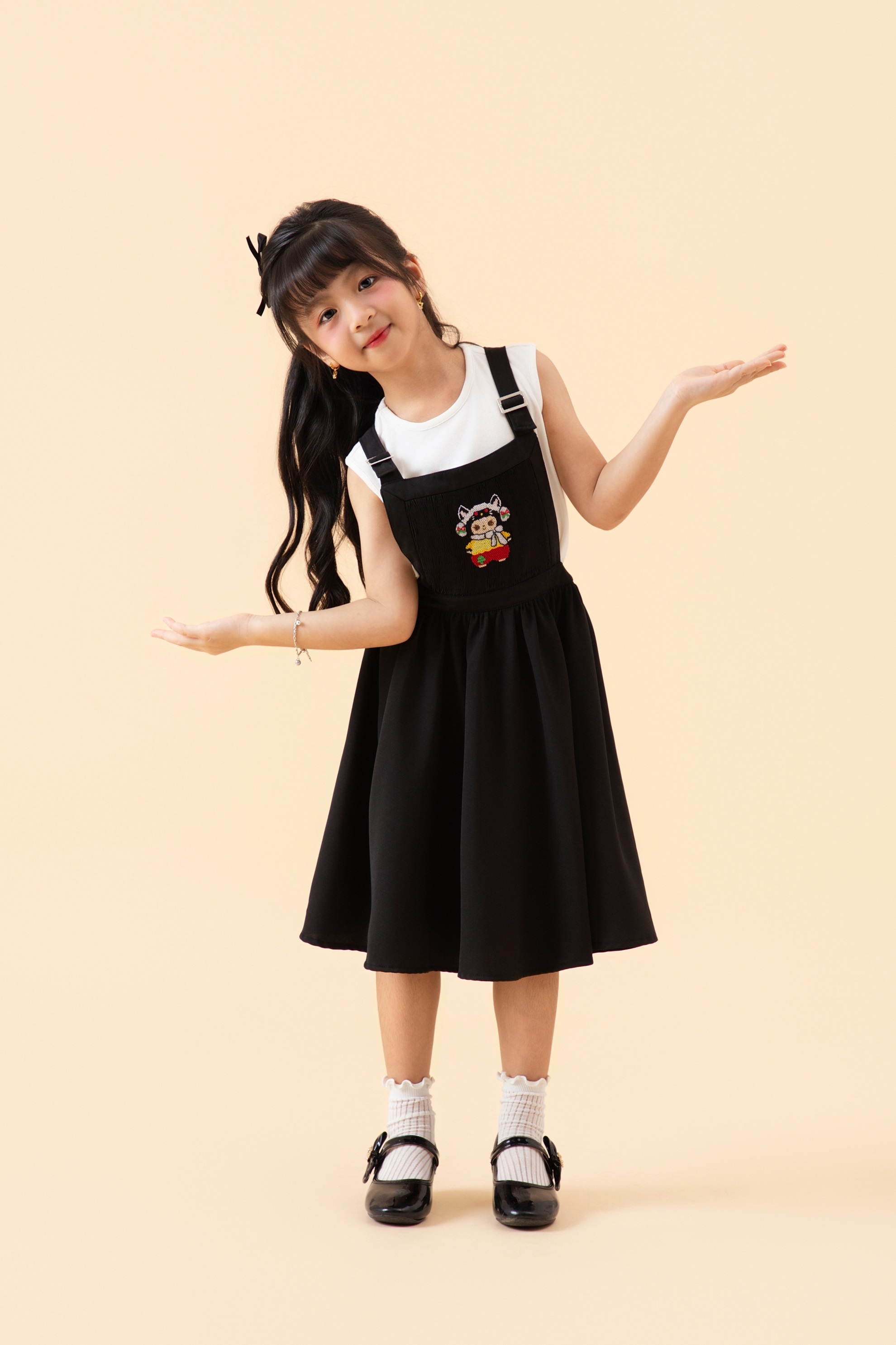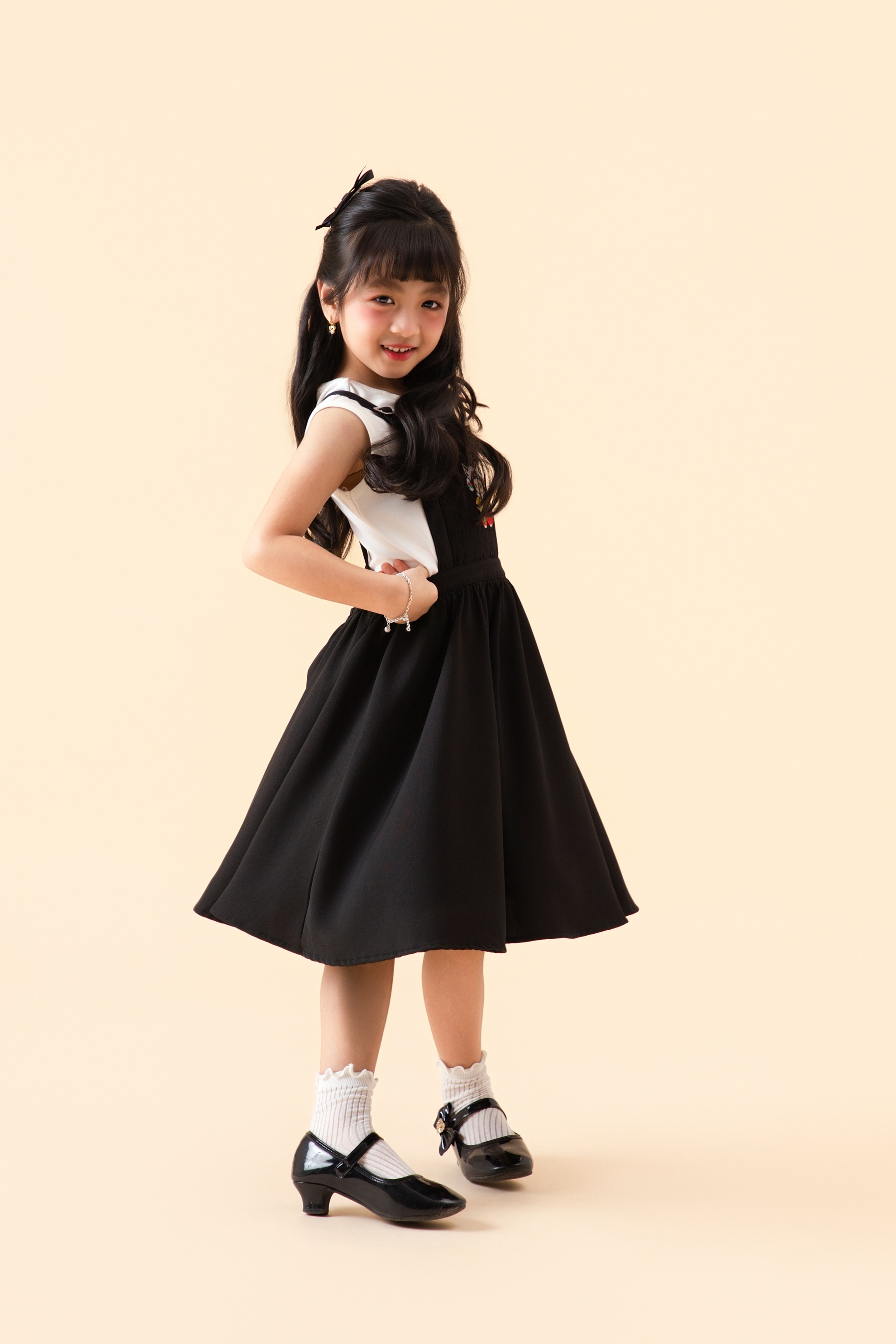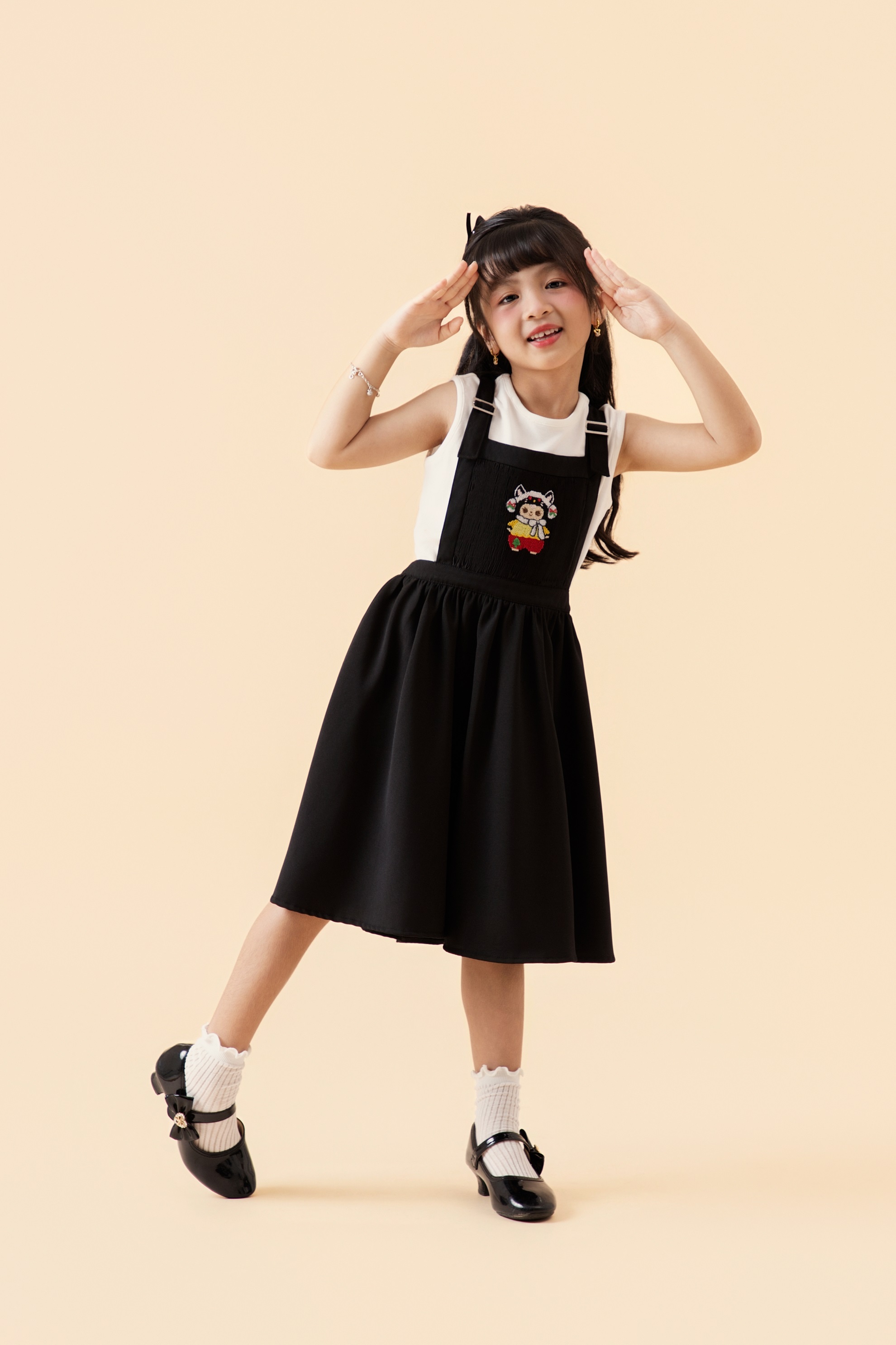 Black Dress thuộc dòng Smock thêu tay cao cấp của Amimi, nơi mọi đường smock – từng mũi kim đều được làm thủ công. Họa tiết Baby Three thêu tay tạo điểm nhấn tinh xảo và sang trọng. Mẫu đầm là sự kết hợp giữa nét cổ điển của kỹ thuật smock và phong thái hiện đại của thiết kế yếm, mang đến vẻ đẹp thanh lịch hiếm thấy ở các dòng đồ trẻ em thường.