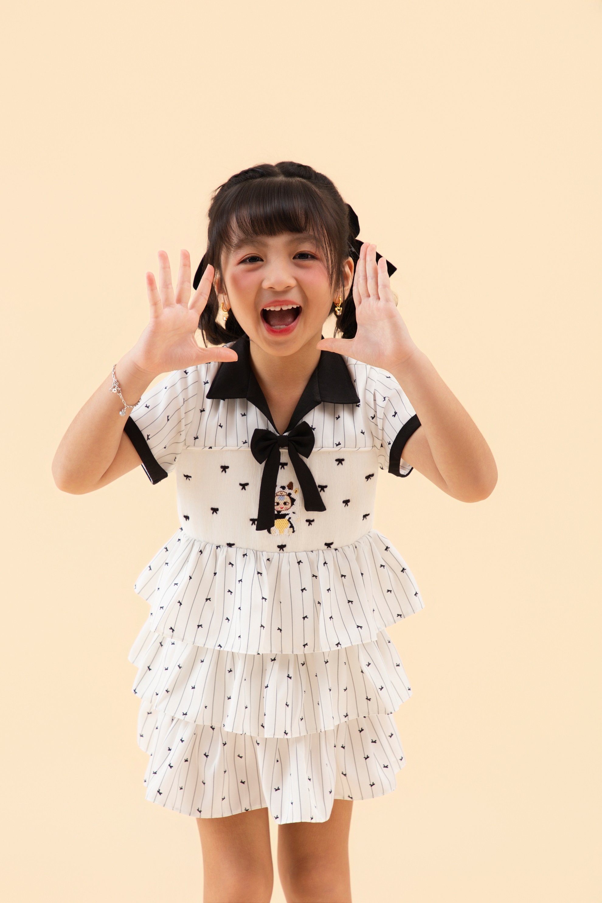 Mini Moo Smock là mẫu đầm dễ thương nhưng mang giá trị thủ công cao. Các nghệ nhân Amimi thêu tay hoàn toàn họa tiết bò sữa, tạo nên nét đáng yêu nhưng vẫn sang trọng. Đầm nhẹ – thoáng – lên phom đẹp, thích hợp cho bé mặc cả ngày nhưng vẫn giữ dáng tinh tế.
