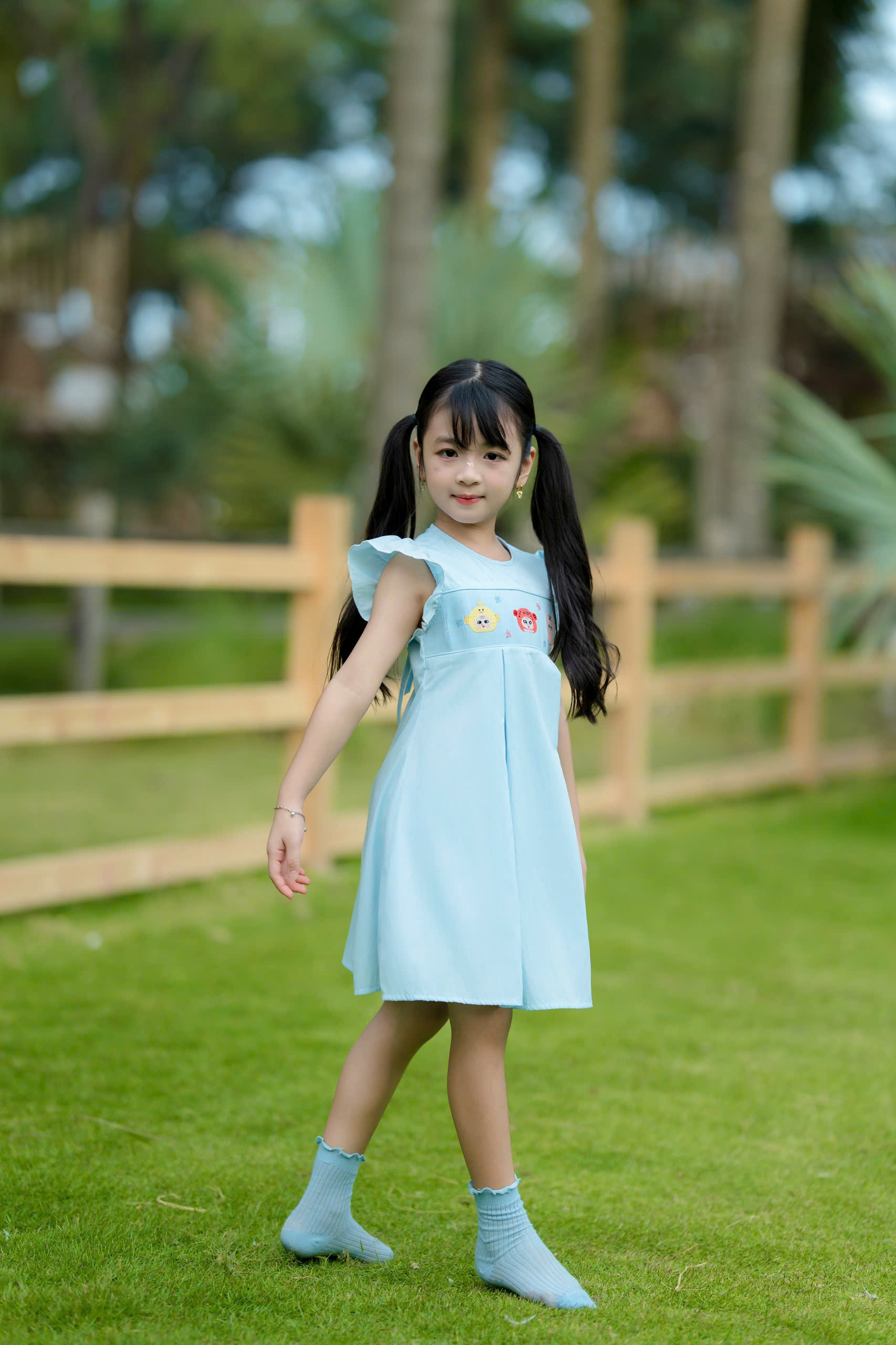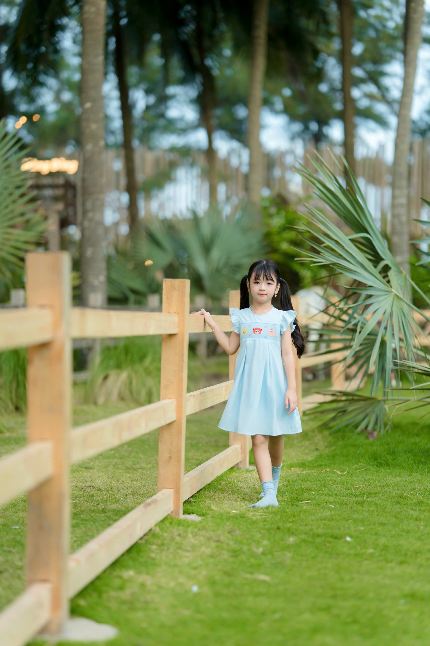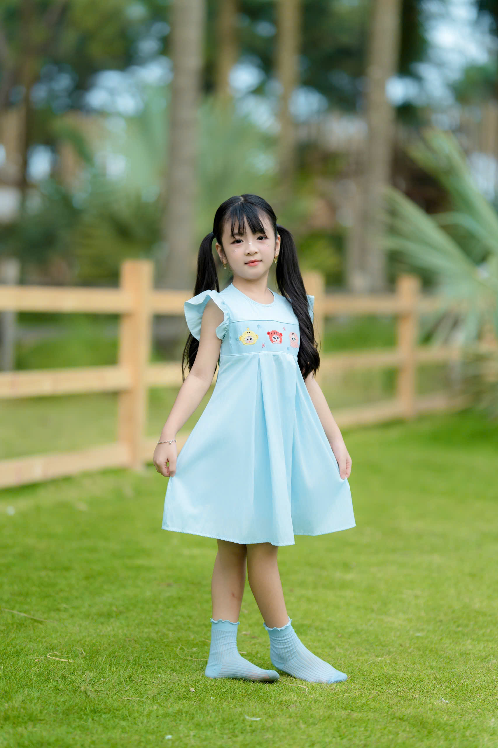 Vải cotton mềm mát, form smock thoải mái để bé có thể vui chơi cả ngày.