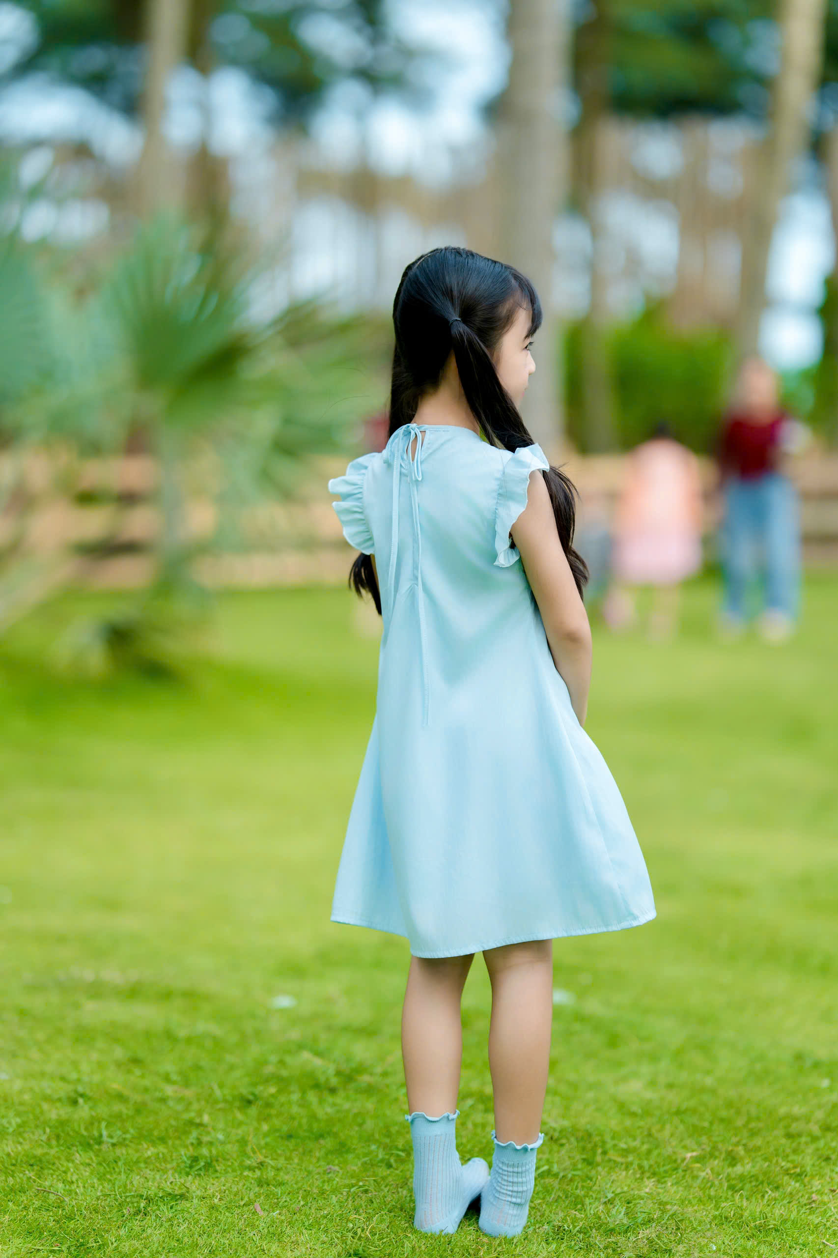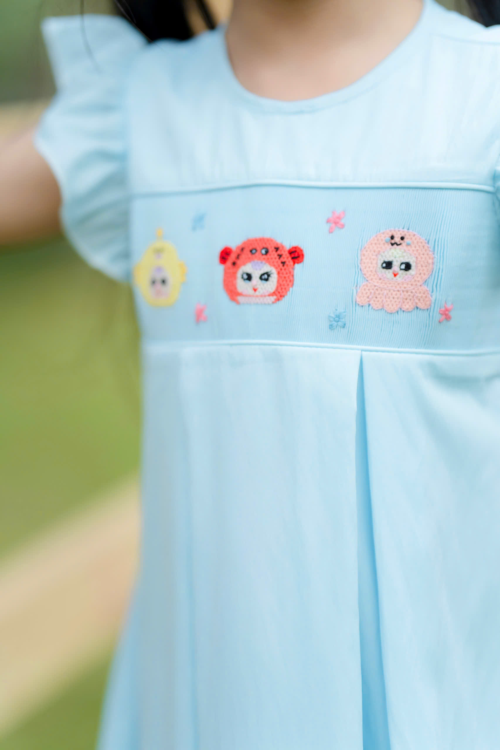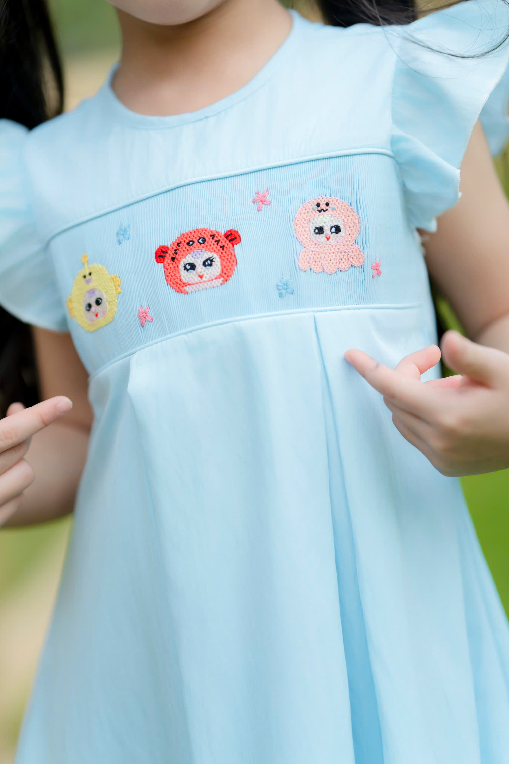Vải cotton mềm mát, form smock thoải mái để bé có thể vui chơi cả ngày.